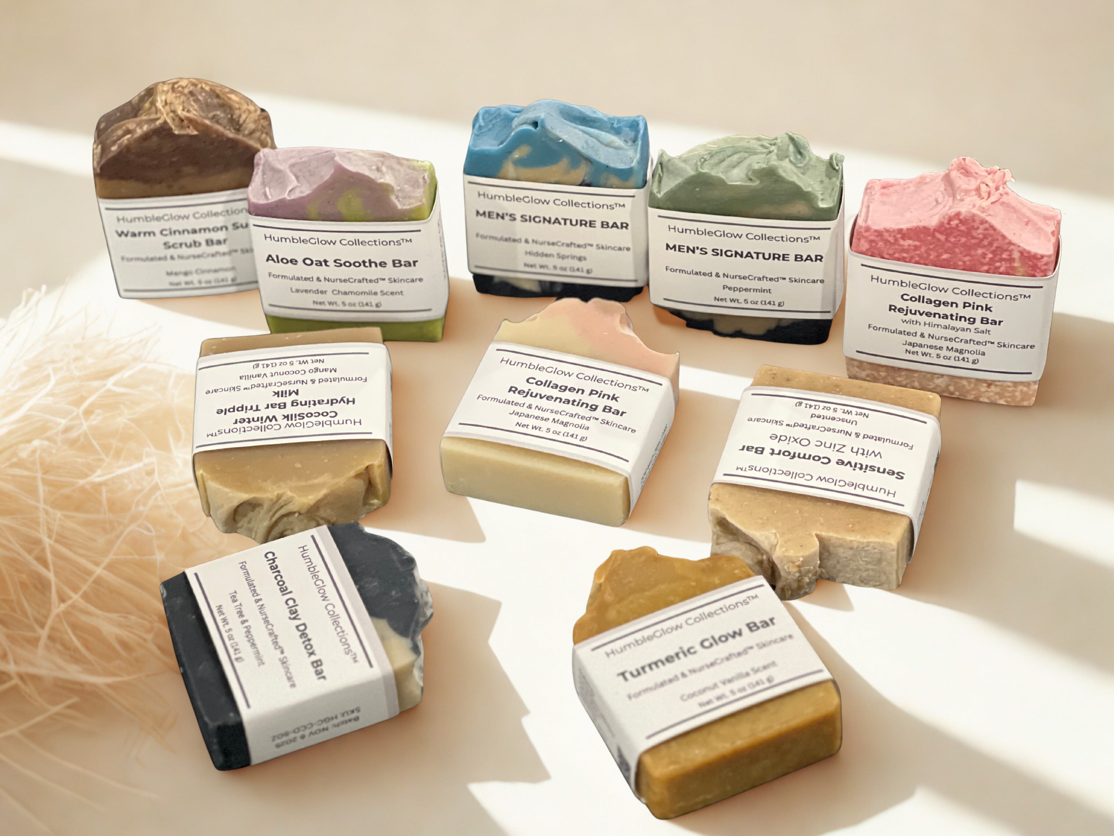 HumbleGlow™ was created by a nurse who understands real skin needs — melasma, dryness, sensitivity, textured skin, and the need for gentle formulas that actually work. Our products are made with intentional, barrier-safe ingredients and simple, effective foundations. Whether it’s our small-batch NurseCrafted™ bars or our upcoming Glow Essentials line, everything is designed to keep your skin soft, hydrated, and naturally glowing — without harsh fillers or complicated routines.